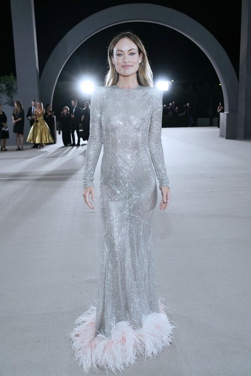 Olivia Wilde, la directora de "Don't Worry Darling", lució un impactante vestido transparente en la segunda gala del Academy Museum of Motion Pictures celebrada el sábado en Los Ángeles.