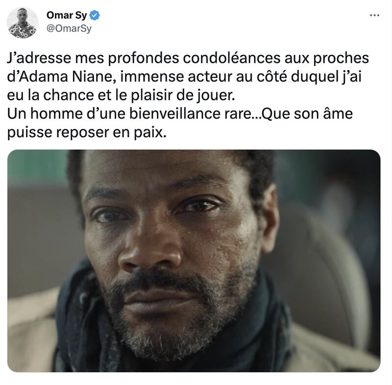 Uno de los primeros en reaccionar fue Omar Sy, quien protagoniza la serie de "Lupin" en el papel titular como el caballero ladrón Assane Diop, inspirado en el clásico personaje francés Arsène Lupin: "Extiendo mi más sentido pésame a los seres queridos de Adama Niane, un inmenso actor junto al que tuve la oportunidad y el placer de interpretar", escribió en Twitter.