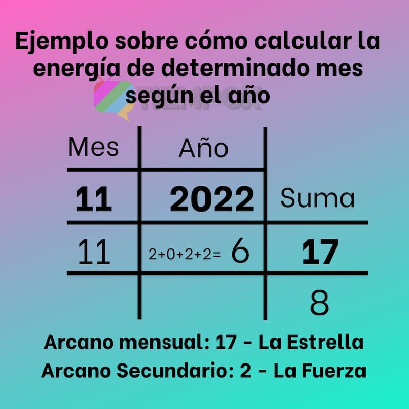Para conocer la energía de determinado mes de un año, necesitamos recurrir a la suma de su numeración. Por ejemplo, el mes de noviembre es el 11 y este año es el 2022, lo cual se calcularía de la siguiente manera: