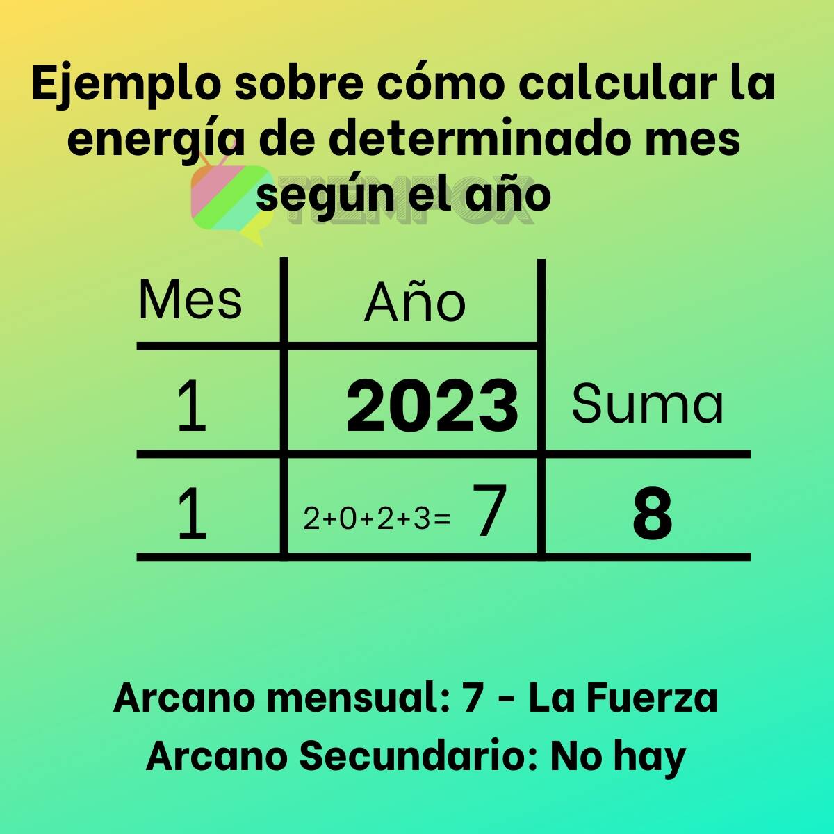 A continuación te dejamos otro ejemplo para que tengas más claridad sobre cómo calcular el Arcano Mayor mensual según el año, esta vez con el mes de enero de 2023: