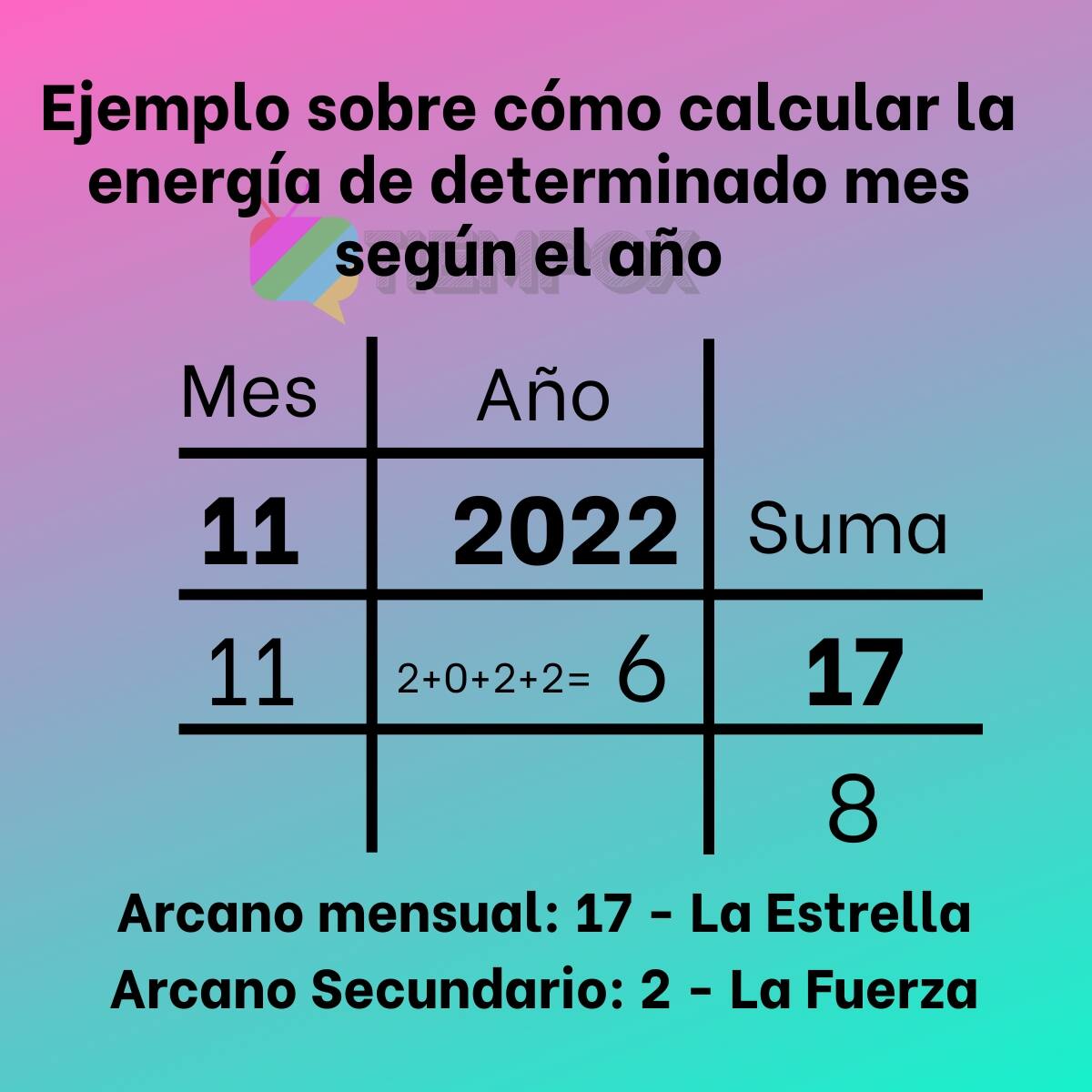 Para conocer la energía de determinado mes de un año, necesitamos recurrir a la suma de su numeración. Por ejemplo, el mes de noviembre es el 11 y este año es el 2022, lo cual se calcularía de la siguiente manera: