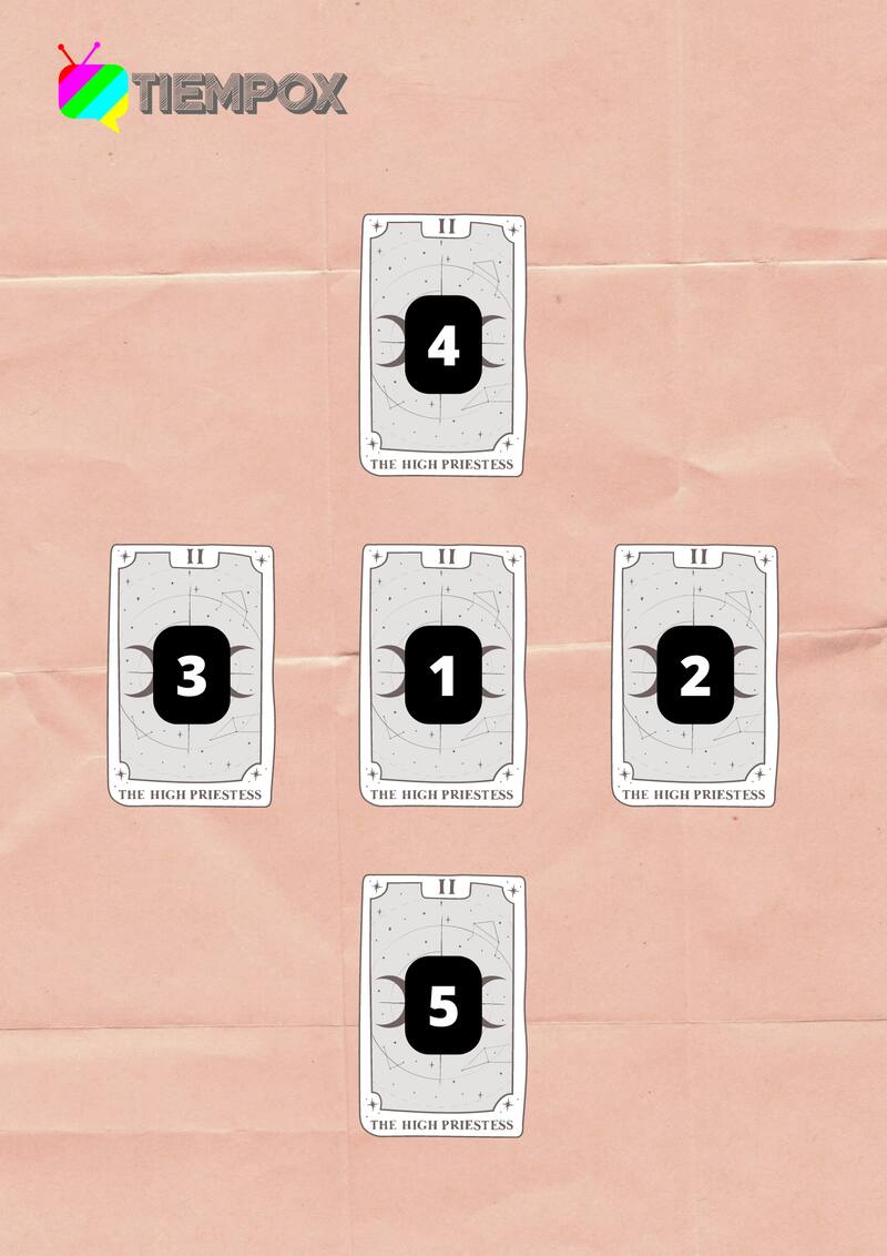 Aquí tienes un ejemplo de cómo deben ir ubicadas las cartas y su respectivo significado: