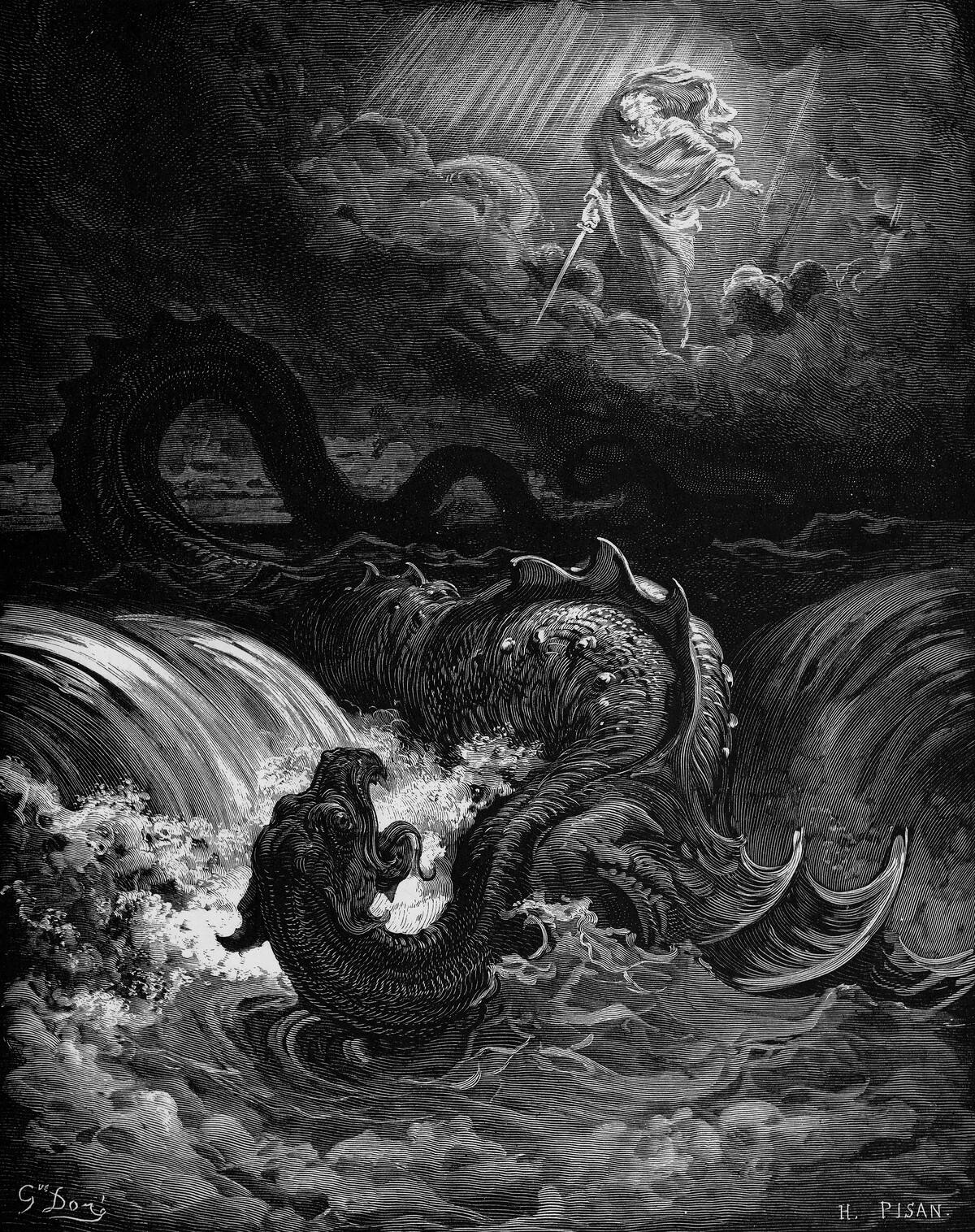 Se asocia con Satán o el Diablo. La Biblia dice que es una bestia marina que fue creada por Dios, y algunos llegan a tener la teoría de que es la reencarnación de la serpiente que aparece en la historia de Adán y Eva.