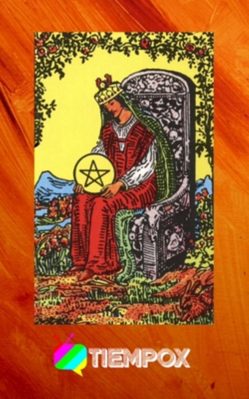 El día de hoy nos aconseja un Arcano Menor, la Reina de Oros. En ella vemos a la reina con una esfera que tiene un pentáculo, quien está sentada en un trono y cuyo entorno tiene abundante vegetación, junto con la compañía de un conejo.