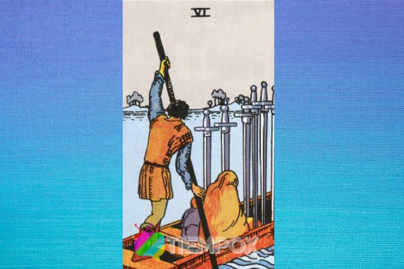 Hoy nos aconseja un Arcano Menor, el 6 de Espadas. Aquí podemos observar a unas personas en un barco yéndose a otro lugar. Ahí van tres personas, un hombre es quien va guiando el movimiento, mientras sentados están una mujer y un niño o niña.