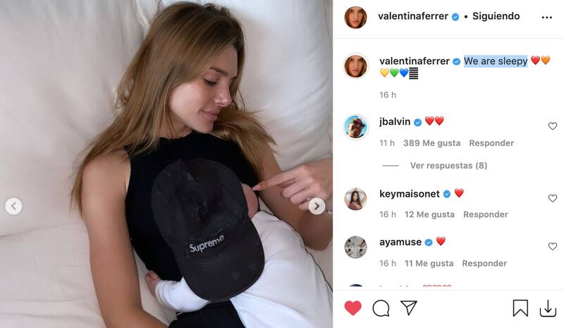 En las fotografías en cuestión se puede observar lo grande que está Río, y al respecto, la modelo argentina escribió: "We are sleepy" (Somos dormilones), acompañado de algunos corazones, que respondió J Balvin con el mismo emoticon.