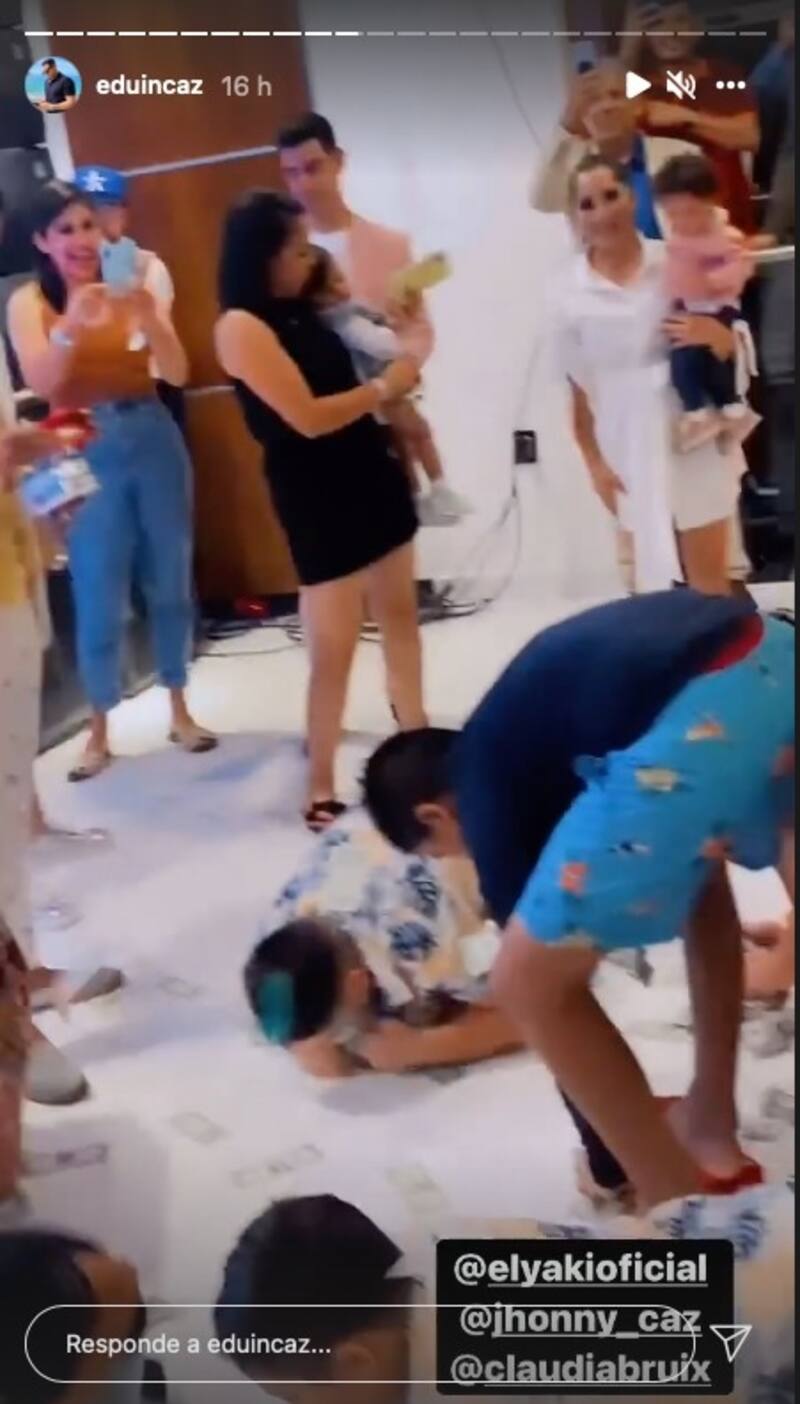 En otra de las historias, se ve a los padrinos lanzar billetes y al feliz padre de Geraldine brindar y abrazar a sus colegas invitados.