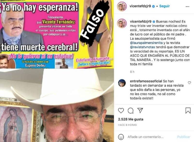Ante esta noticia, que hace unos días publicó la revista “TV Notas”, su hijo Vicente Fernández Jr. desmintió lo dicho.