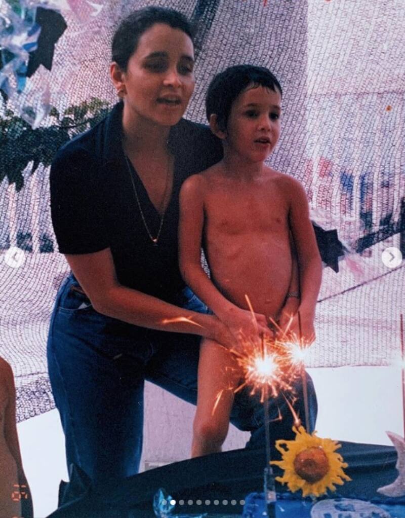 Inició su posteo con una foto y un pequeño panqué de sus 26 años, después una imagen de cuando vivía en Cartagena, en los años 90. Después canta un tema que bautizó "Tacones rojos".
