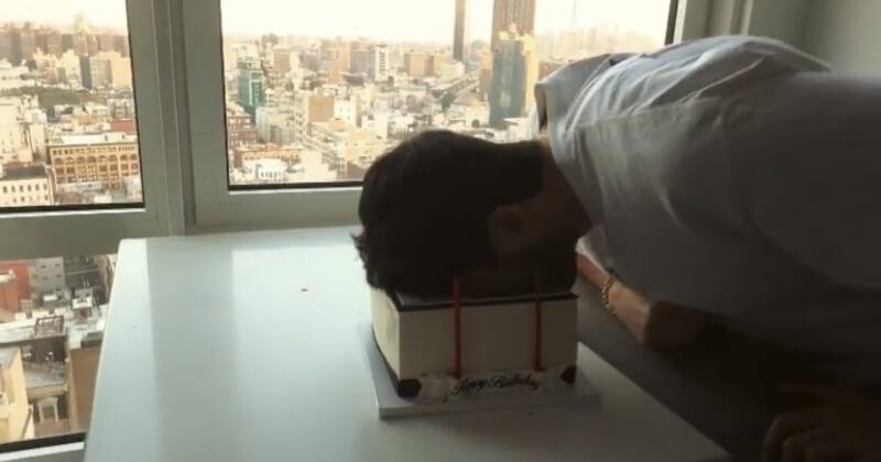 Y entre tanto festejo, también subió hoy dos pasteles, uno en el que él mismo se embarra en el pastel y otro donde baila alegre "Las mañanitas" a ritmo de batucada.