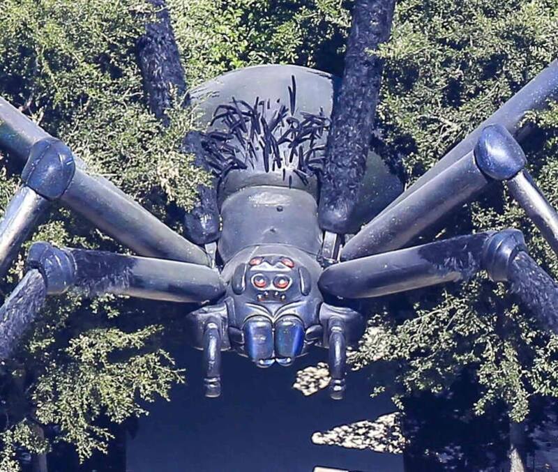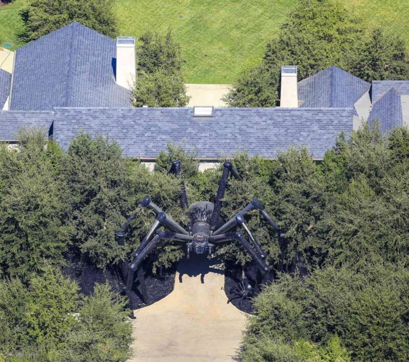 Según se puede apreciar en las recientes fotos aéreas que han mostrado los paparazzi, la empresaria mandó a colocar una gigantesca araña hiperrealista que emerge de una zona de arbustos de manera amenazante.