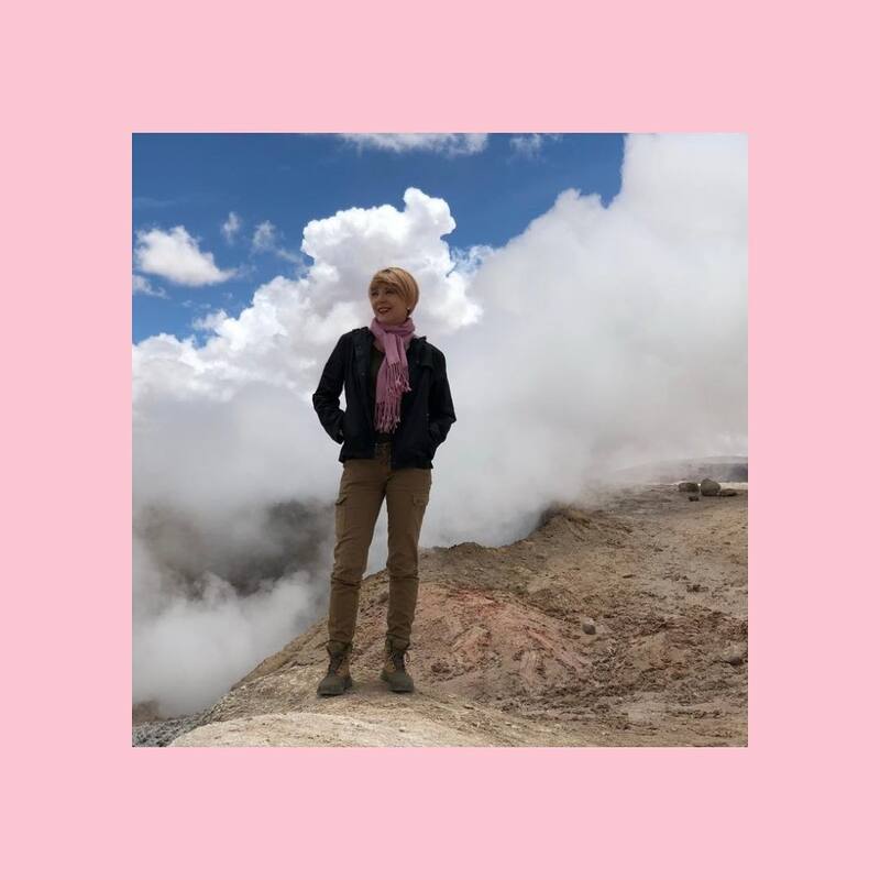 En la publicación se puede observar a la actriz en la cima de lo que aparenta ser una montaña, mirando al horizonte, mientras que en las demás fotografías hay una frase de ella, así como una ilustración con anormalidades en los senos para la detención temprana.