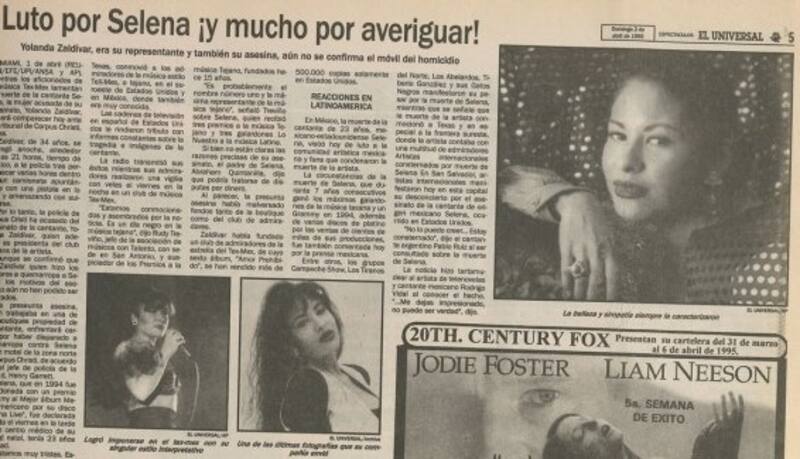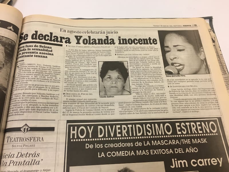 El diario Reforma, en su sección Gente, decía que Yolanda Saldívar, pese haber sido encontrada con el arma en la mano, se delcaraba inocente de asesinar a Selena.