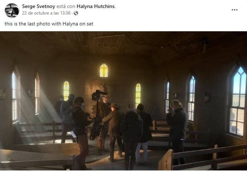En las últimas horas, Serge Svetnoy, jefe electricista de la película "Rust", compartió en su perfil de Facebook una fotografía inédita del momento antes de que Alec Baldwin disparara de manera accidental en contra de la directora de fotografía Halyna Hutchins, el jueves pasado, en Nuevo México.