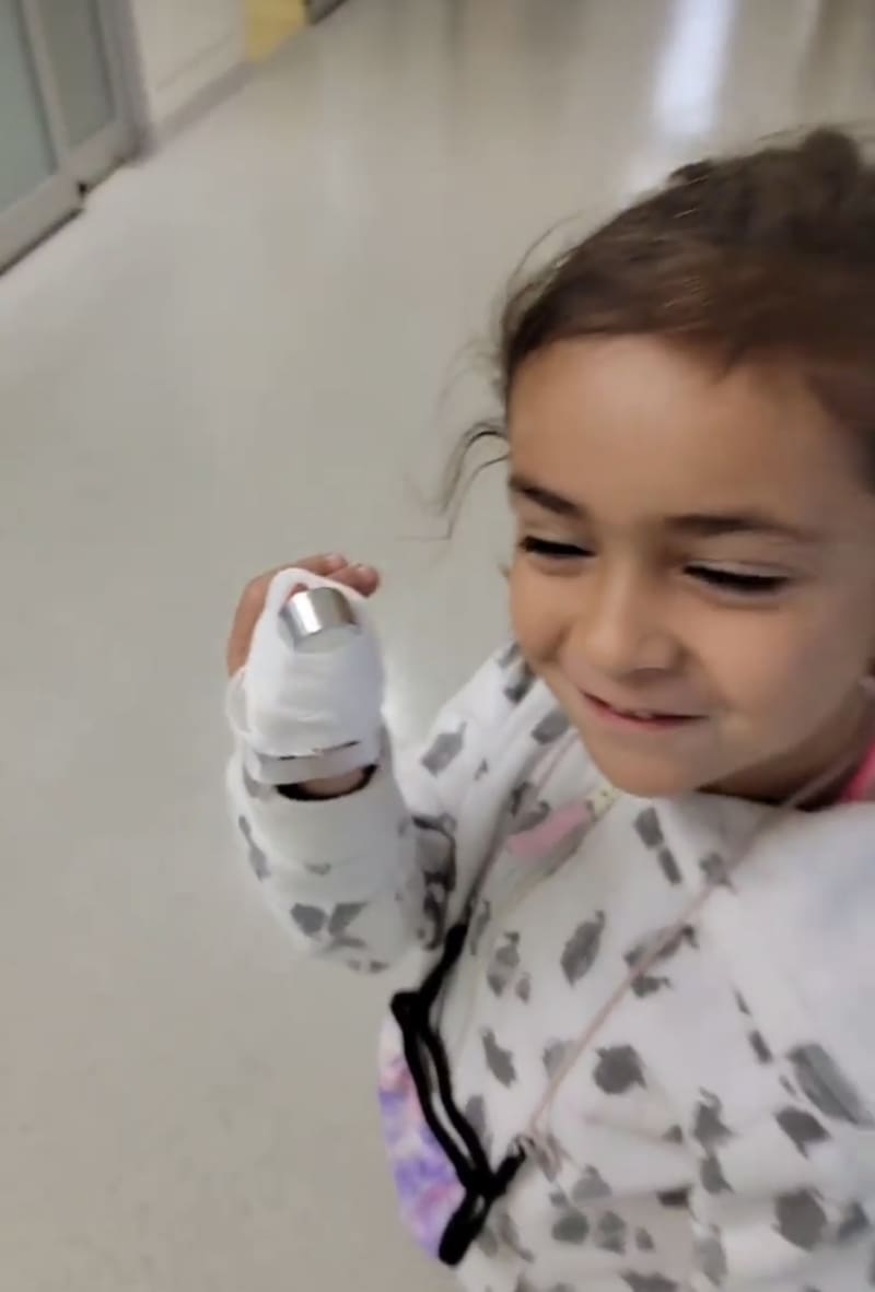 En otro clip, Fuentes muestra que le inmovilizaron el dedo a Renata, quien con una sonrisa posó para la cámara, ante la sorpresa de su padre y los fans de su famosa mamá, Jacqueline Bracamontes.
