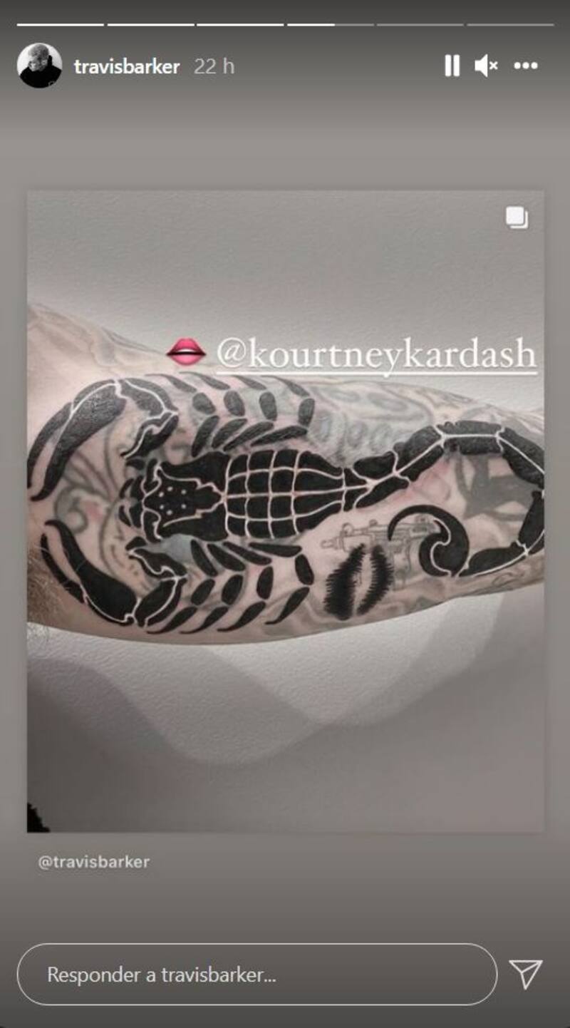 A través de su cuenta de Instagram, Barker publicó una fotografía con su nuevo tatuaje, el cual se sitúa muy cerca de la cola de un escorpión gigante que plasmó sobre su brazo.