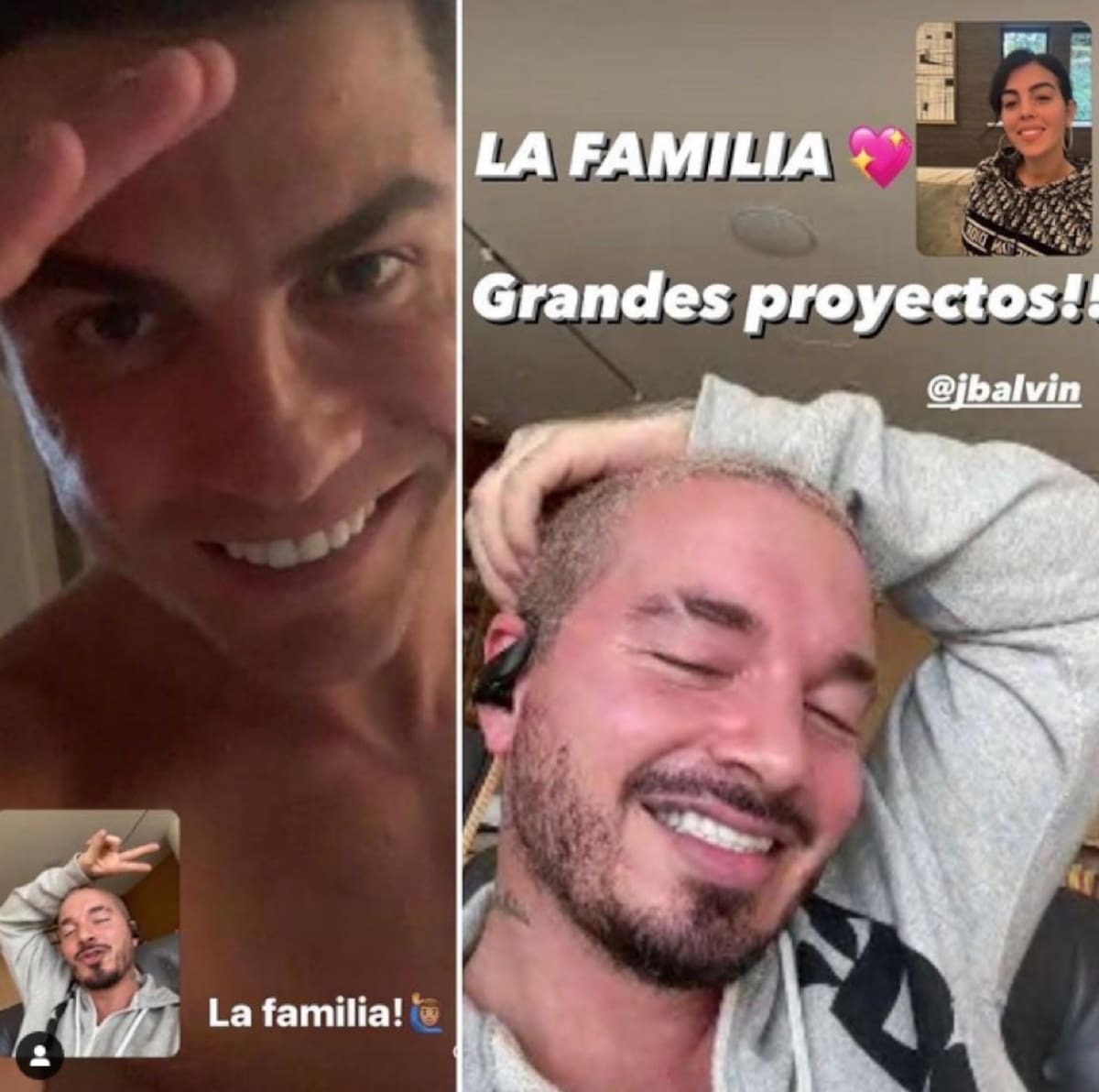 El cantante colombiano publicó una foto donde se le ve platicando en llamada con Cristiano Ronaldo, la estrella de futbol. Y aunque no especifica de qué hablaron o por qué la foto, sólo escribe que traen proyectos nuevos juntos y le escribe la palabra familia.