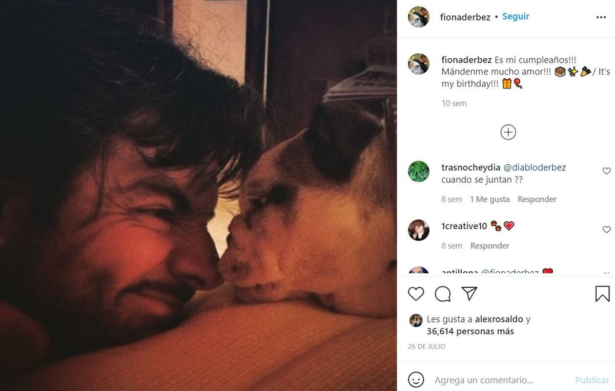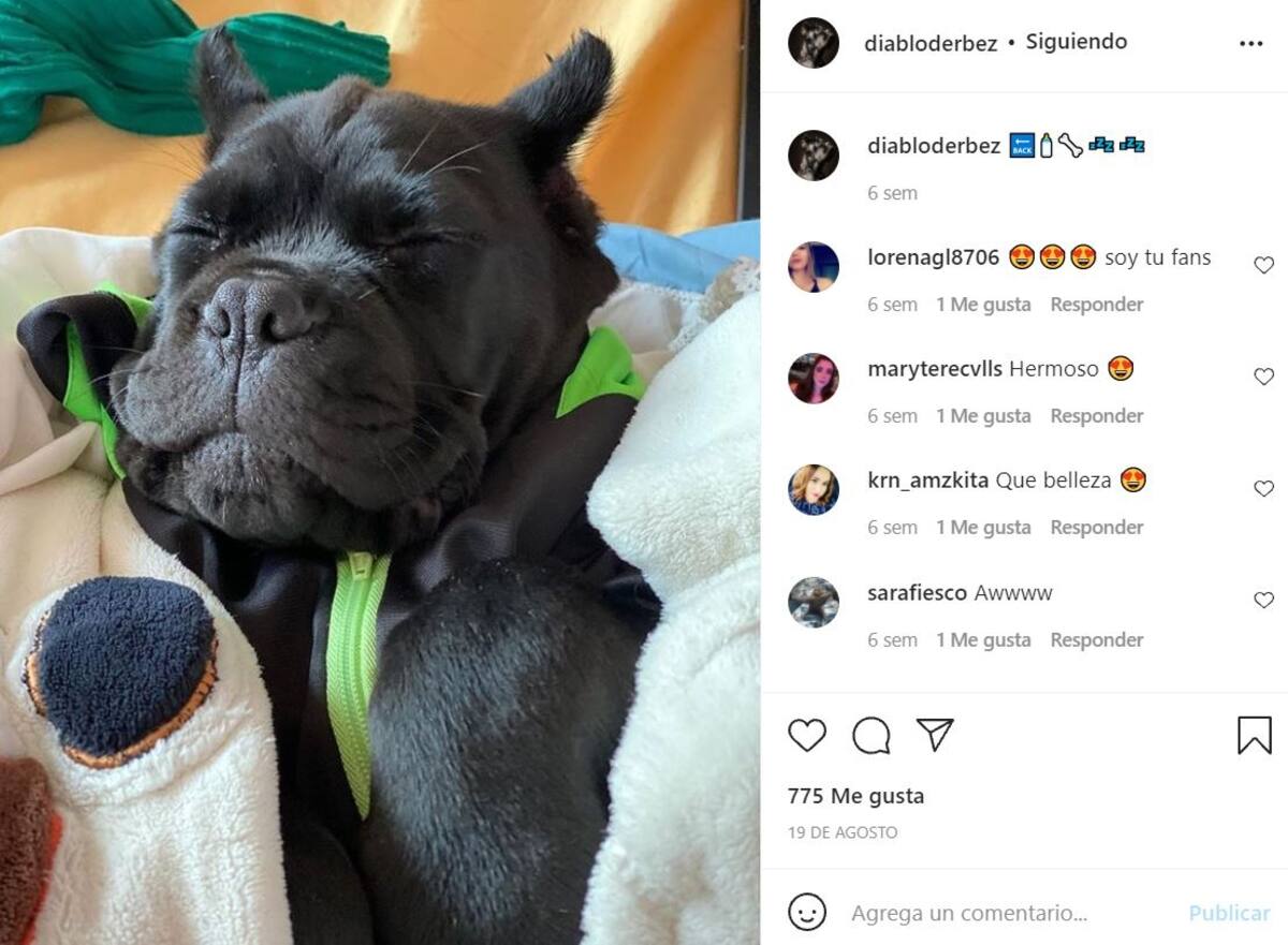 "Aquí con @diabloderbez", escribió la actriz en la fotografía que la muestra posando junto al enorme animal, que, como famoso Derbez también cuenta con Instagram personal.