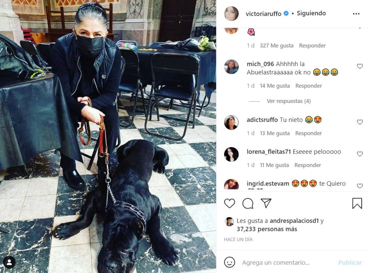 La foto fue retomada en la cuenta del perro con la leyenda: "La foto más esperada, con mi abuela!".