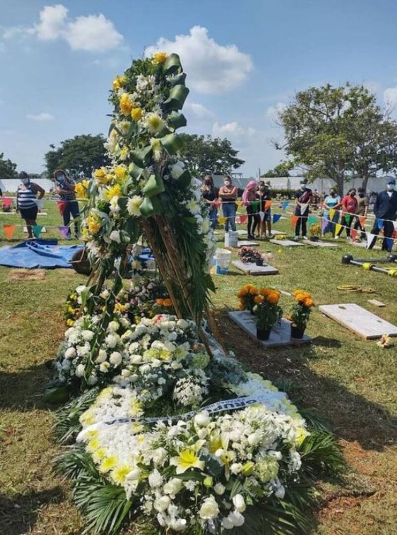 De acuerdo con las imágenes que circularon en redes sociales, se puede ver que la familia colocó un puño de tierra, una playera y un sombrero sobre el ataúd del joven de 22 años.