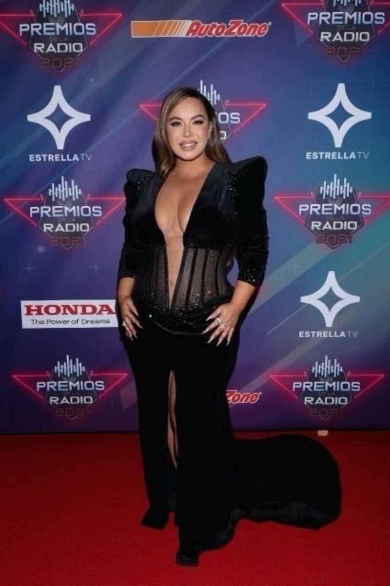 Chiquis Rivera fue otra de las celebridades que aparte de ser conductora tuvo su participación en el escenario de la premiación por lo que la hija de Jenni Rivera para la red carpet utilizó un vestido negro con transparencias y un gran escote de Saint Laurent. Mientras que, en su presentación fue muy criticada, porqué se le fue la voz, la ex esposa de Lorenzo Méndez utilizó un conjunto azul con una falda de tul.