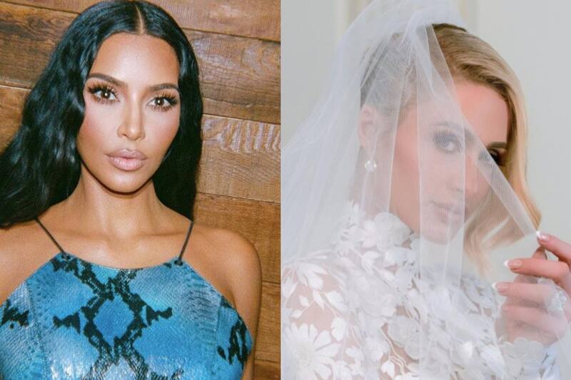 Kim Kardashian acomoda el velo a Paris Hilton antes de su boda