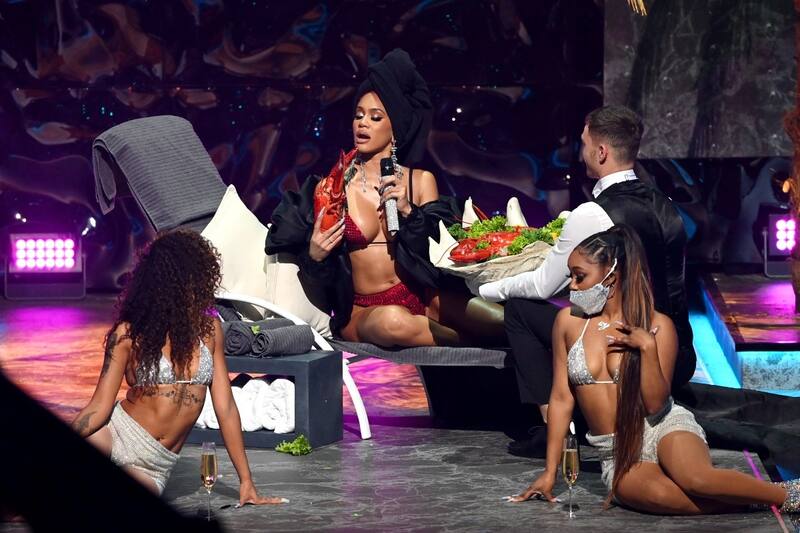 Sus espectáculos fueron inolvidables. En una de sus presentaciones tomó el sol junto a una piscina con champán en un oasis bordeado de palmeras. En otra, interactuó con soldados inspirados en "El juego del calamar" con trajes rosas y la marca MTV.
