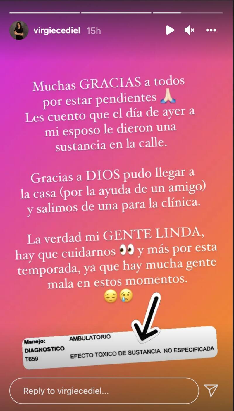 Los resultados médicos evidenciaron que efectivamente había una sustancia tóxica la cual no pudieron especificar. En el mensaje la hermana de Jessica Cediel escribió: "Por favor, mi gente linda, cuídense que por ahí anda suelta mucha gente mala", adjuntando al final de la publicación el resultado dado por los médicos.