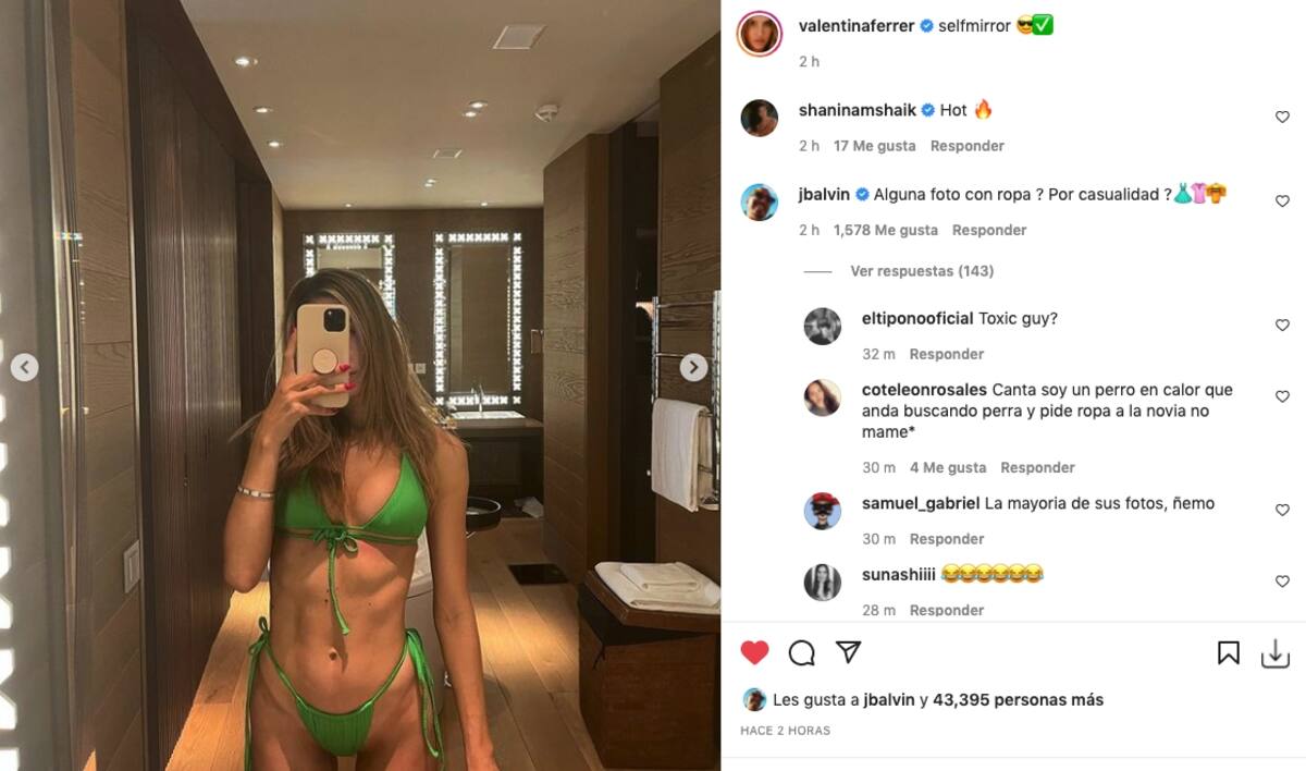 J Balvin desató la polémica, pues algunos seguidores de la modelo argentina argumentaron que había sido machista y fuera de lugar, aunque también hubo quienes lo defendieron. Por su parte, Valentina Ferrer no respondió al papá de su hijo.