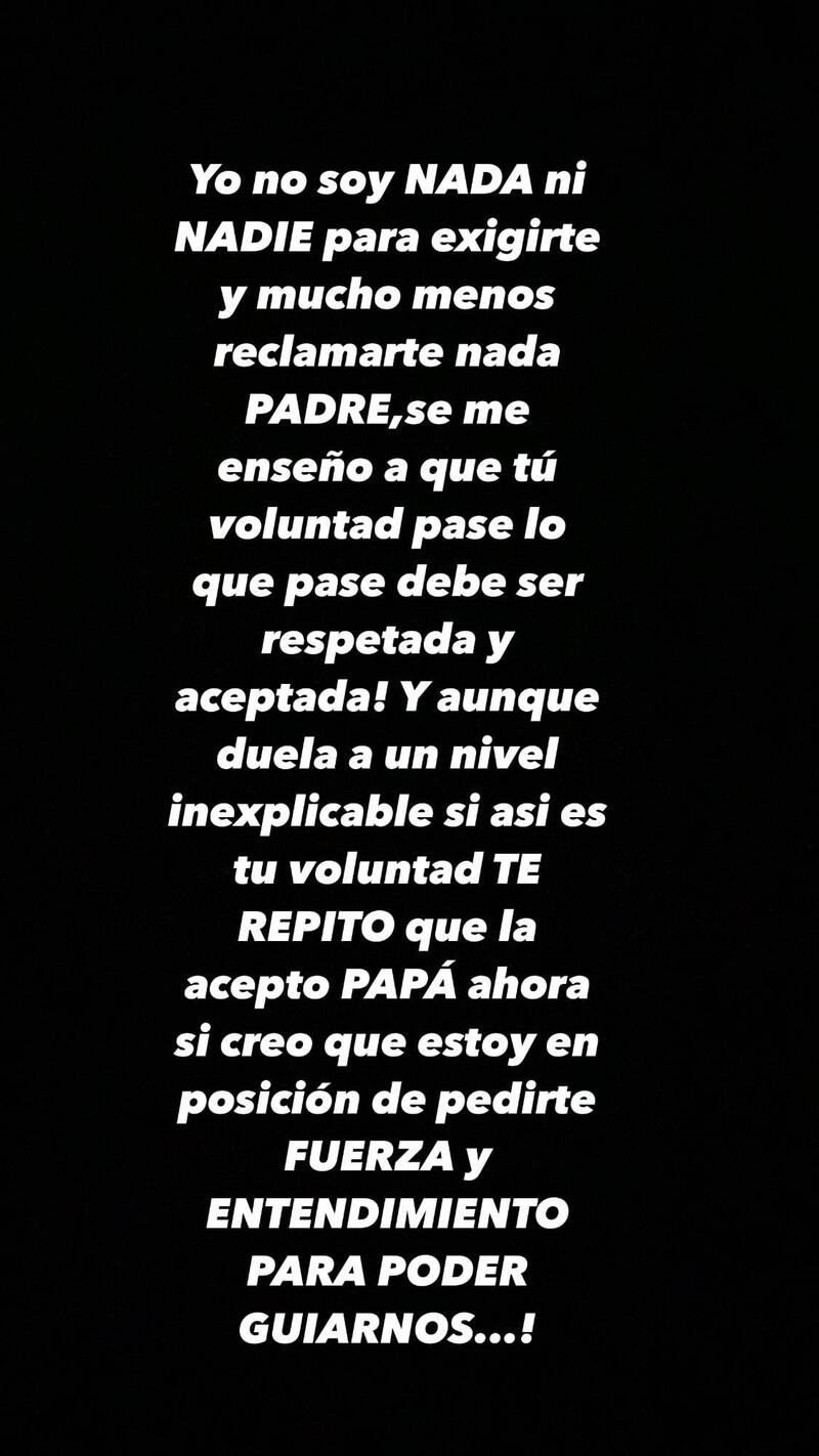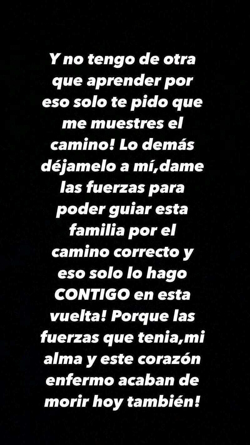 "Yo no tengo de otra que aprender, por eso solo te pido que me muestres el camino", planteó, para luego agregar: "Las fuerzas que tenía, mi alma y este corazón enfermo acaban de morir hoy también".