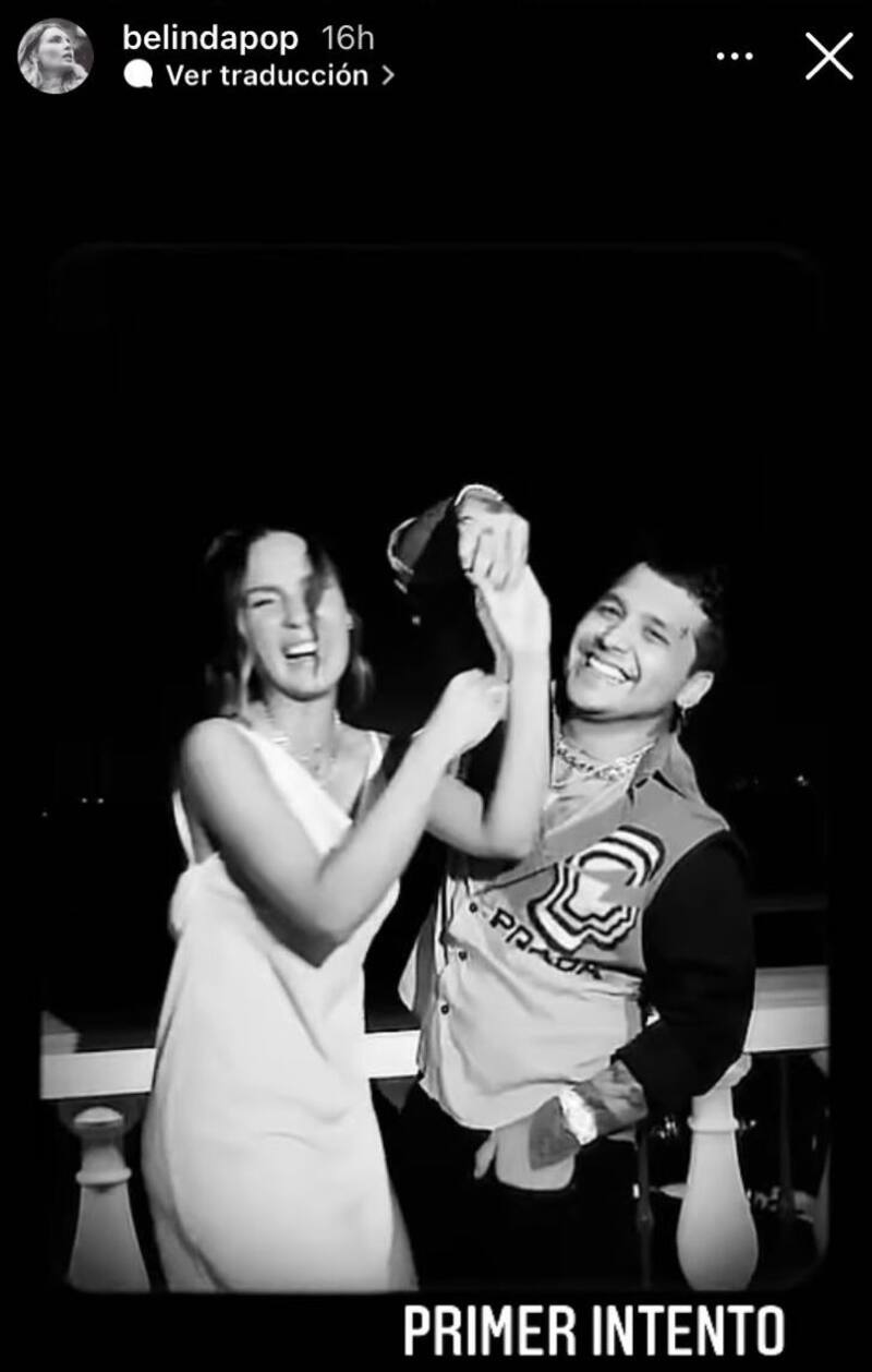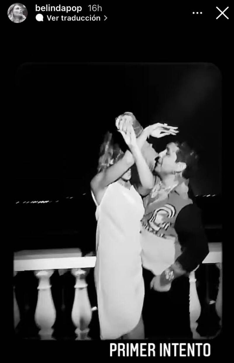 En las siguientes historias de Belinda, Christian Nodal apareció a su lado, y ambos protagonizaron un romántico baile en un balcón, intentando dar una romántica vuelta, que comenzaron a sospechar podría ser el ensayo de su baile de bodas.