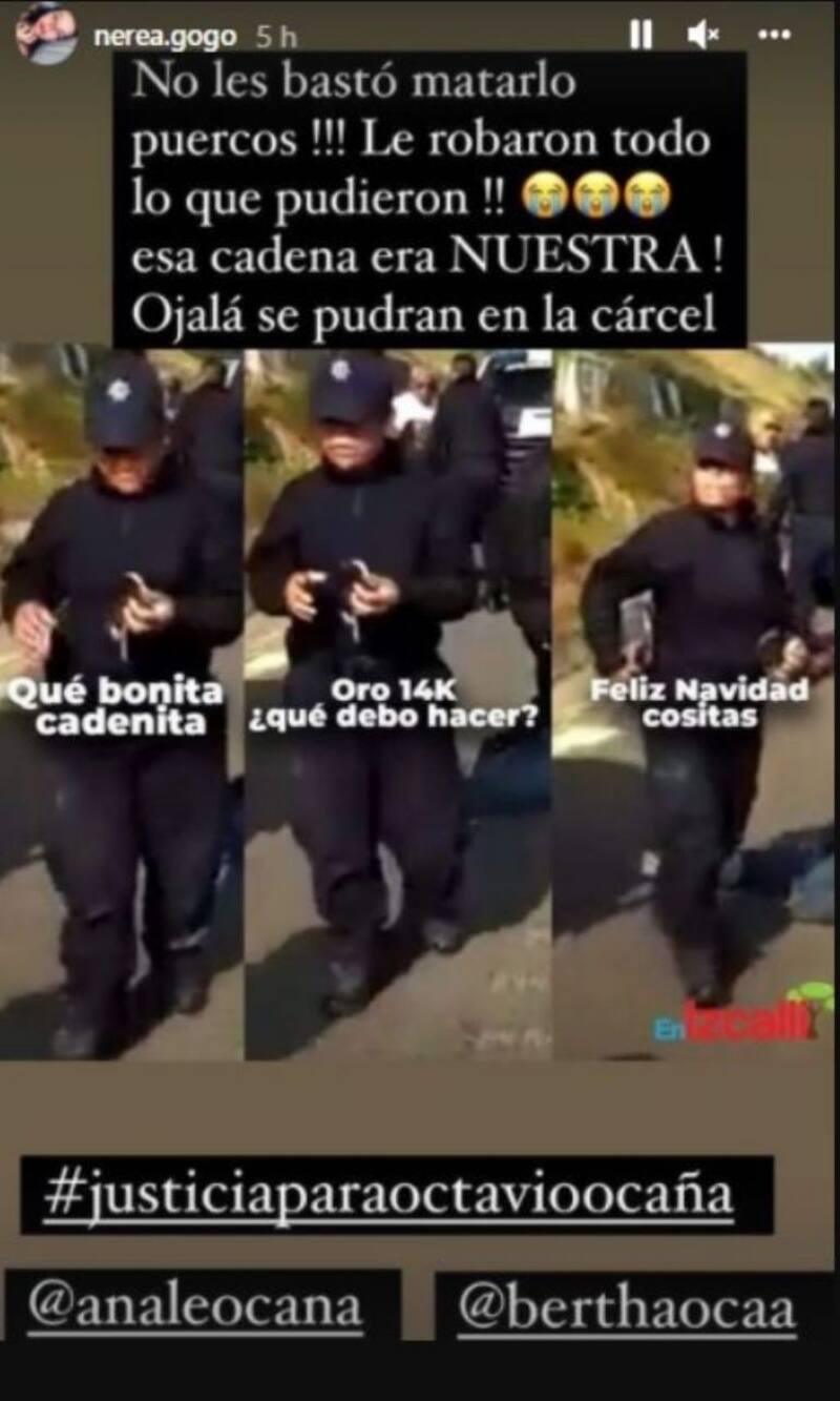 La prometida del actor de “Vecinos”, Nerea Godínez denunció, a través de redes sociales, que su novio, Octavio Ocaña, no solo fue asesinado por los policías municipales de Cuautitlán Izcalli, sino que también lo despojaron de sus pertenencias, luego de dispararle en la cabeza.
