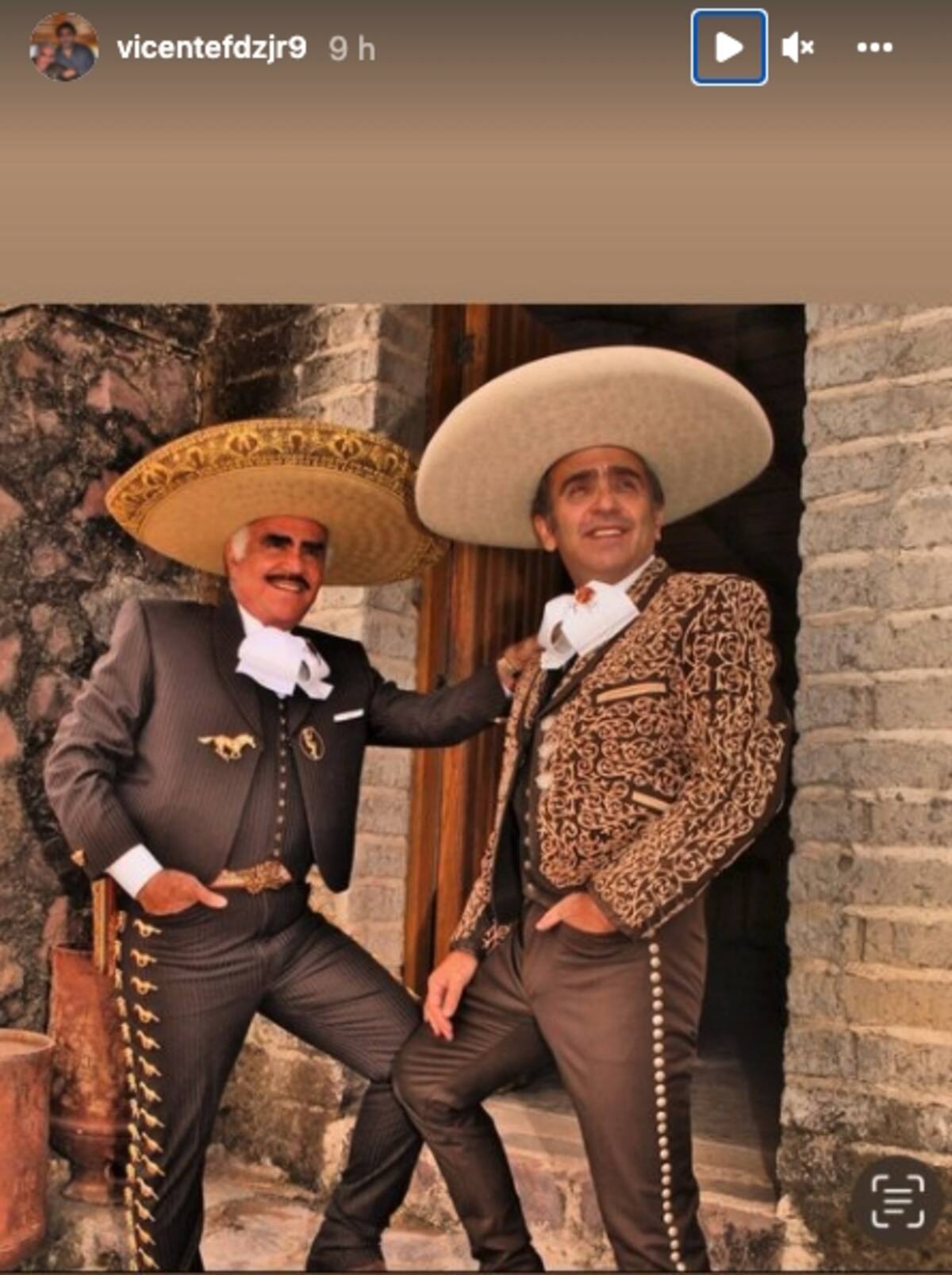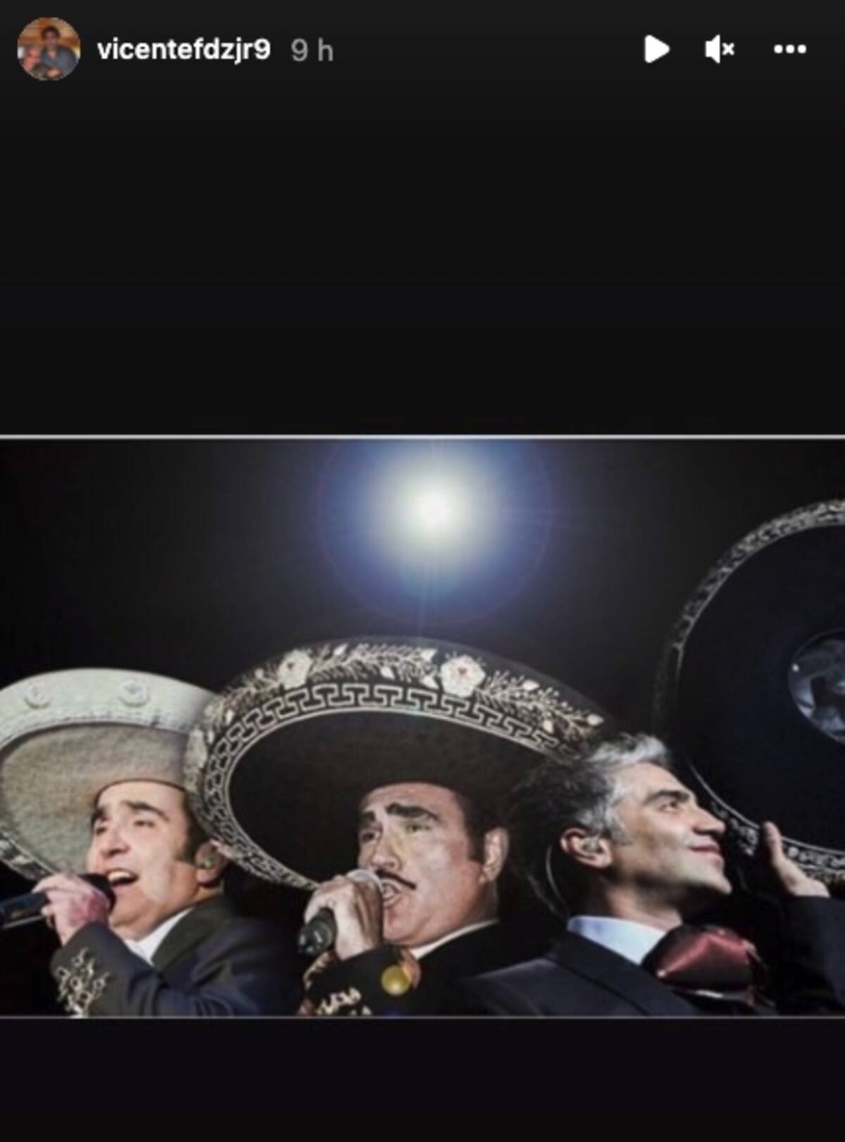Un par de horas después de las palabras de Alejandro Fernández, Vicente Fernández Jr. comenzó a publicar diversas fotografías junto a su padre tanto en su feed como en sus Instagram Stories. En la publicación estática, escribió: "Te amo padre @_vicentefdez".