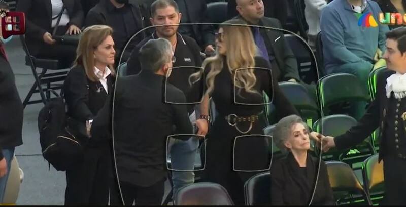 De acuerdo con las imágenes filtradas por el programa "Ventaneando", la viuda de don Vicente Fernández prefirió que la comunicadora se sentara a su lado antes que la influencer.