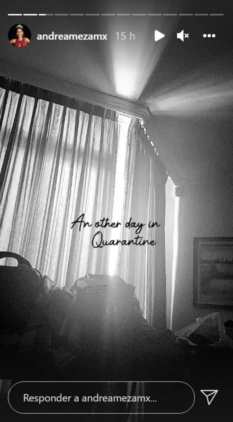 Sin embargo, debido a las restricciones sanitarias por la pandemia de covid-19, la mexicana se encuentra en cuarentena en su hotel, desde donde ha compartido algunas fotografías.