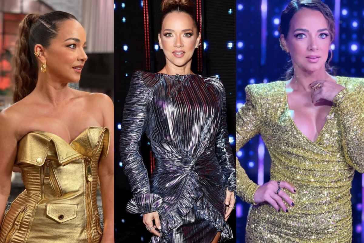 Otra opción para no usar falda o vestido es un traje. Corto, largo, entubado, acampanado, con manga corta, con o sin escote; como sea, te salvará la noche. Elige el color que más prefieras y de la tela que más te guste, todos hacen una silueta estilizada y te verás formal sin mucho esfuerzo. Si te vas por uno brilloso como Adamari, combínalo con el pelo suelto y con accesorios grandes.