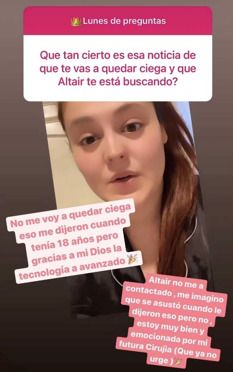 Fue a través de su cuenta personal de Instagram que Allisson mencionó durante una ronda de preguntas y respuestas el pasado lunes la verdad sobre su actual condición visual y el supuesto acercamiento de Altair.
