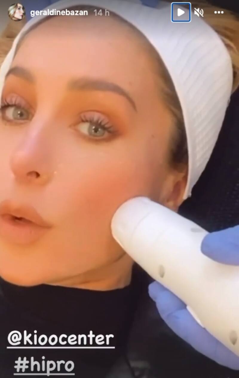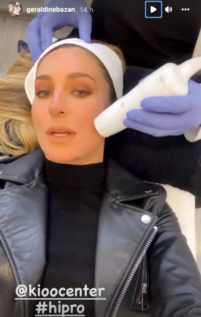 En sus publicaciones, mientras se sometía al tratamiento, Geraldine Bazán mencionó: "Ahí les va, estoy en 'Kioo' (clínica estética) y me están haciendo en 'Hipro' que es un ultrasonido de alta intensidad focalizado que nos ayuda a la piel a tensar, a crear nuevas fibras".