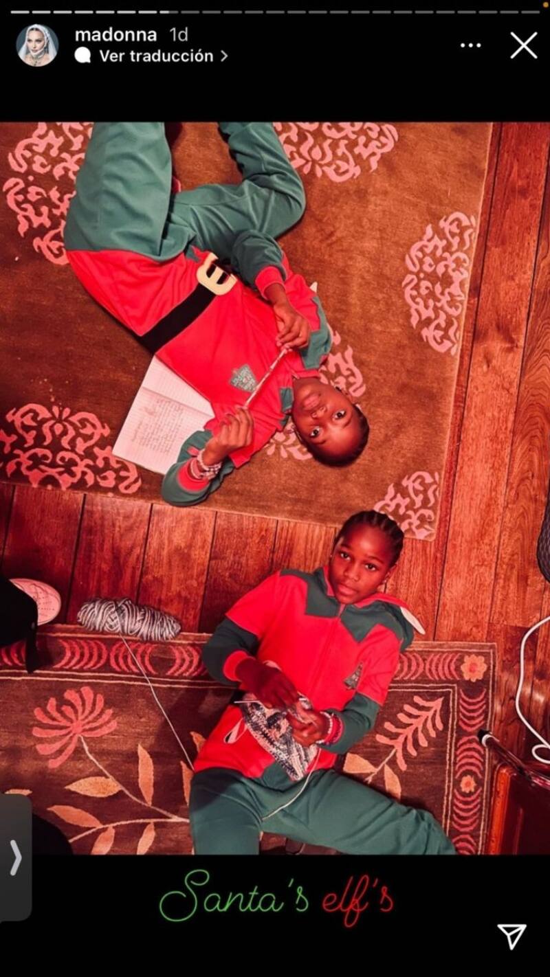 Y en sus historias de Instagram, la llamada "Reina del Pop", de 63 años, subió una foto de ella y sus hijas a la que tituló "Christmas with the Girls and Picasso", pues las cuatro posan bajo un cuadro de Picasso. Además, subió una foto suya con la leyenda "Queen Christmas 1" y un video de las gemelas en el que se ve a Estere tejiéndole unos guantes que Madonna presumió con una serie de fotos en su reel y el mensaje "¿Pueden decir qué tan orgullosa estoy?".