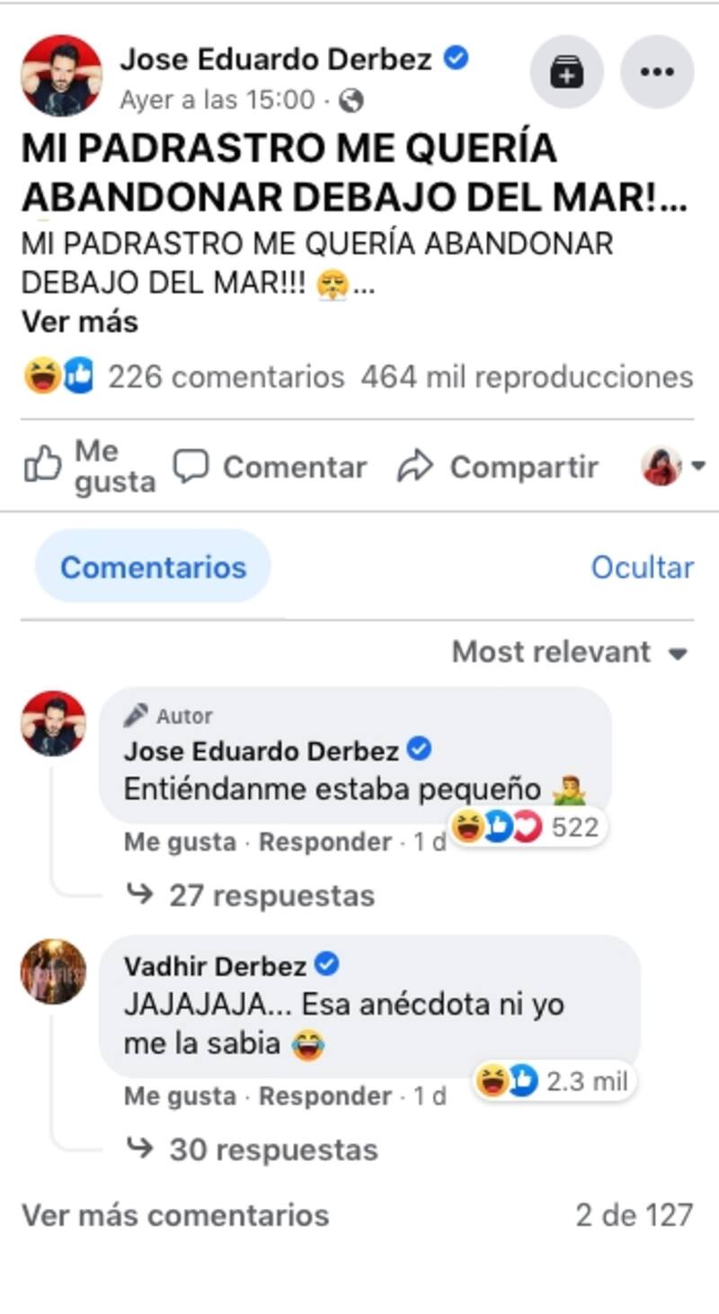 Recientemente, José Eduardo Derbez compartió aquel fragmento de la entrevista en su Facebook, en el que su hermano Vadhir Derbez reaccionó con un peculiar comentario.