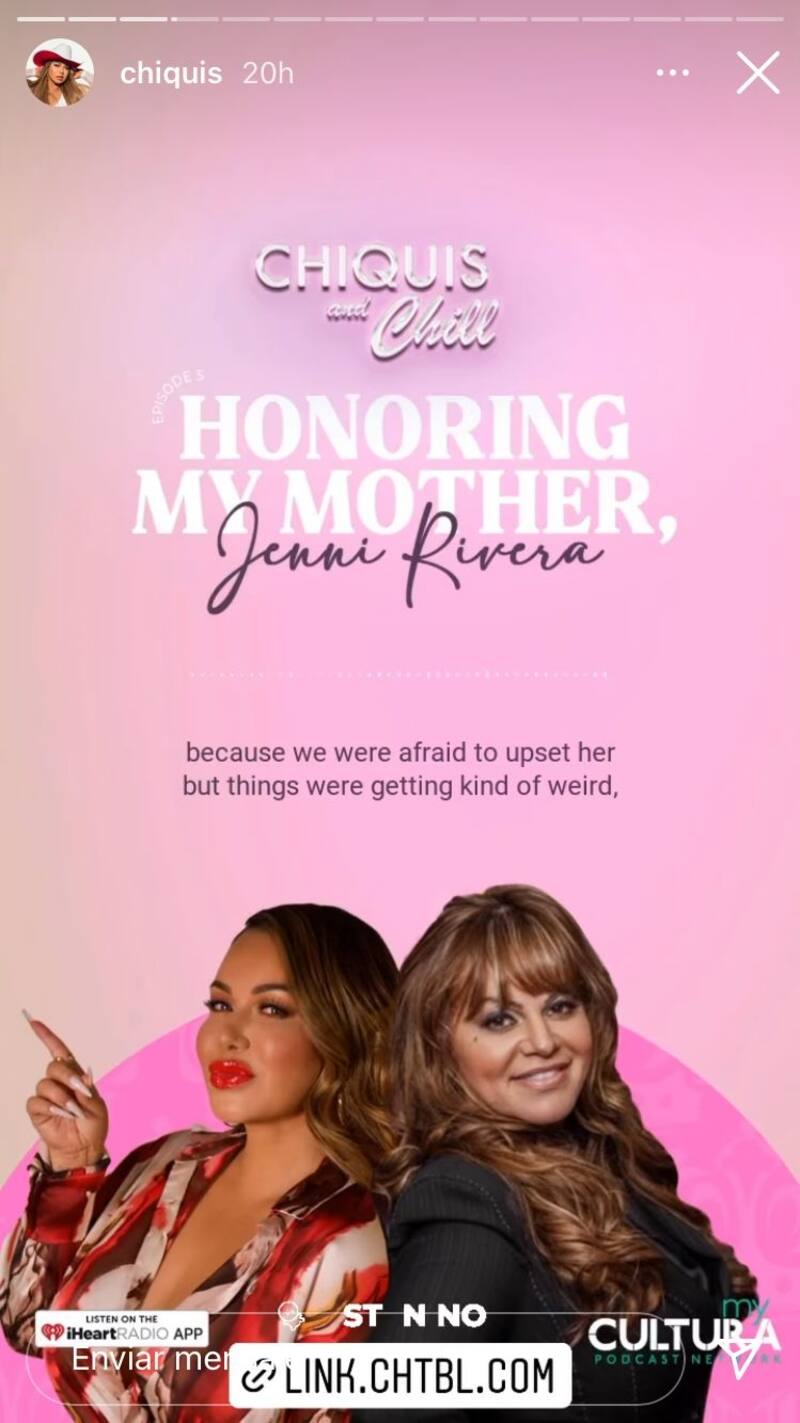 Ahora fue turno de su hija, Chiquis Rivera, la cual a través de un podcast para la app de I heart Radio decidió honrar la memoria de su madre y contar experiencias inéditas que vivió con "La mariposa del barrio".