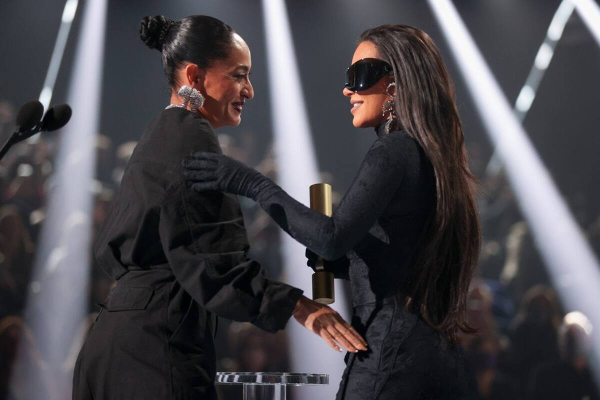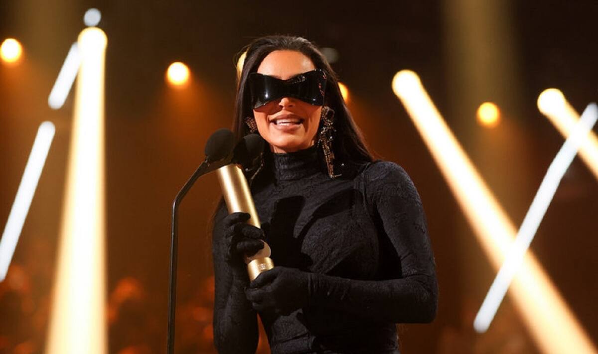 "De un amante de Balenciaga a otro", dijo la actriz al momento de entregarle el premio a Kim Kardashiam haciendo alusión a su atuendo totalmente negro de Balenciaga, que recordó su look en la Met Gala de 2021. Pero, a diferencia de aquella vez, la celebridad optó anteojos de sol geométricos que cubrían la mitad de su rostro.