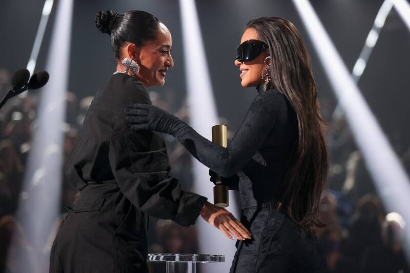 Durante la noche de este martes 7 de diciembre, Kim Kardashian se subió al escenario en el Barker Hangar, Santa Mónica, para recibir el premio de la mano de la anterior ganadora del Fashion Icon Award, Tracee Ellis Ross.