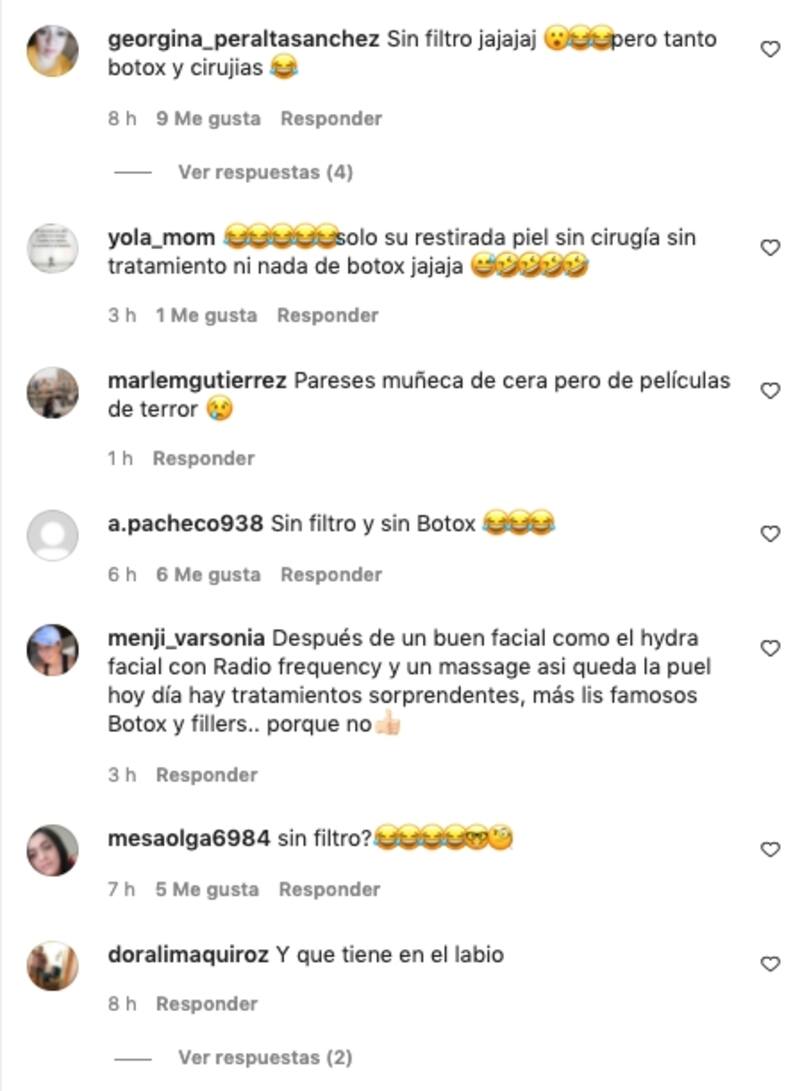 Sin embargo, la publicación no fue bien aceptada por sus seguidores, quienes en varios comentarios argumentaron que la cantante sí estaba usando filtros y además remarcaron aquellos "arreglitos" estéticos en su rostro.