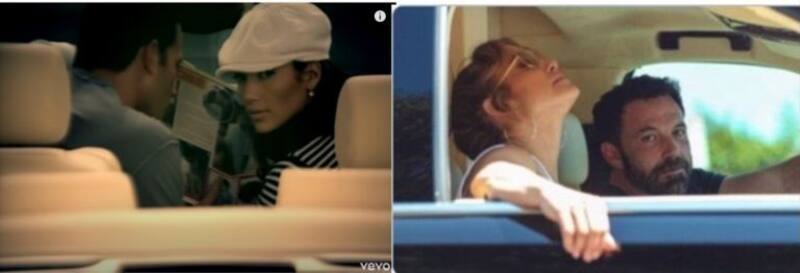 En el clip “Jenny from the Block”, el cual habla sobre como la cantante sube a la fama tras su paso por los barrios del Bronx, hay una escena donde la pareja es captada en un automóvil, así como sucedió recientemente mientras buscaban una mansión en Los Ángeles, California. Demasiadas coincidencias.