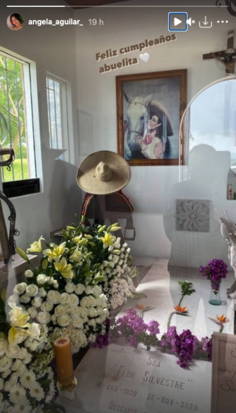 Los hijos de Pepe Aguilar, incluida Aneliz, también recordaron a su abuelita a través de sus Instagram Stories, y mostraron cómo llenaron de flores la tumba en la que descansa junto a su eterno enamorado, Antonio Aguilar.