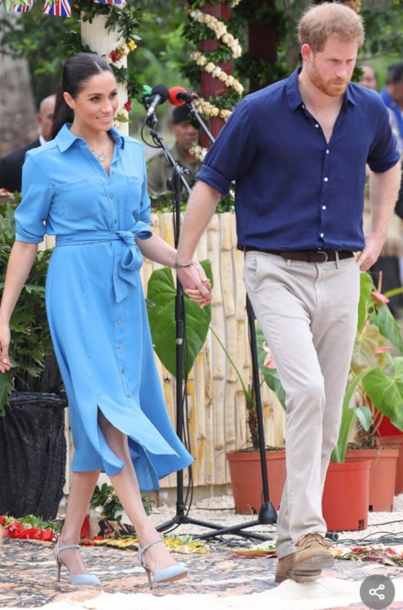 La duquesa de Sussex, Meghan Markle, los combinó con un vestido camisero que la ayudaba a estar cómoda con su apenas abultado vientre de embarazo.