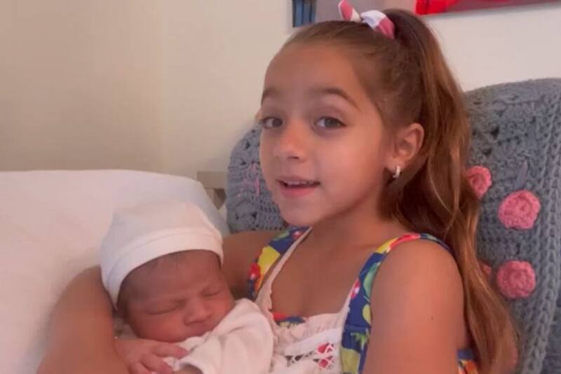 En las imágenes se puede ver cómo la pequeña Alaïa carga en sus brazos al bebé de apenas días de nacido y luce realmente conmovida.