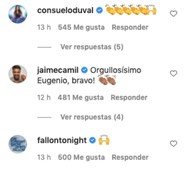 Entre otros famosos que felicitaron al actor por su presentación estuvieron Consuelo Duval, Jaime Camil, Jacky Bracamontes, Carlos River, Galilea Montijo, Sylvia Pasquel, "La Chupitos" y Chumel Torres
