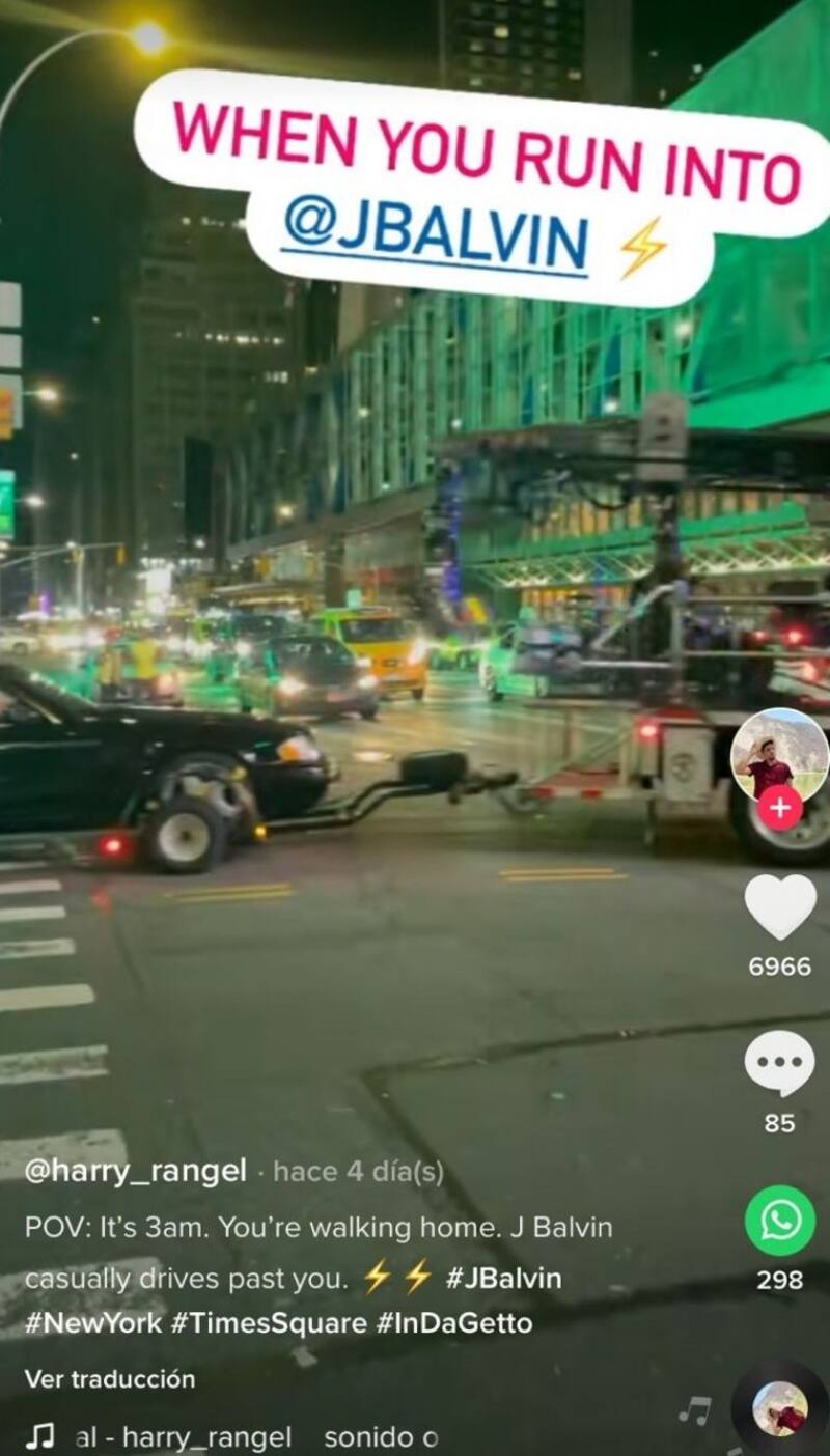 El usuario de TikTok Harry Rangel compartió un video donde se ve una grúa remolcando el convertible de J Balvin en las calles de Nueva York, alrededor de las 3 de la mañana. Lo que llamó la atención fue que de entre un grupo de personas que pasaba por ahí, alguien lo confundió con Maluma.